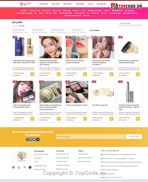 Sharecode Website Giao diện bán mỹ phẩm làm đẹp xịn xò- Giao diện dễ chỉnh sửa, không cần biết nhiều về code